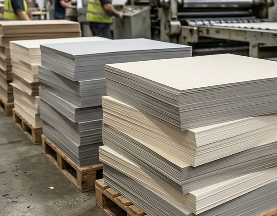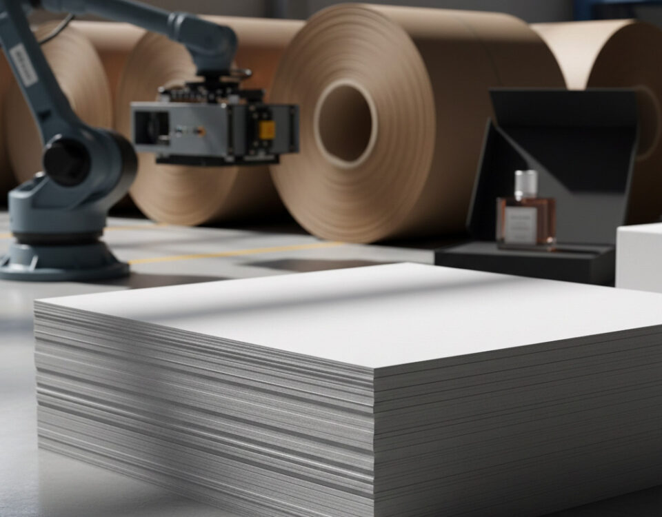 "Bobinden tabakaya hassas kesim, beyaz ve metalize mukavva seçenekleri."